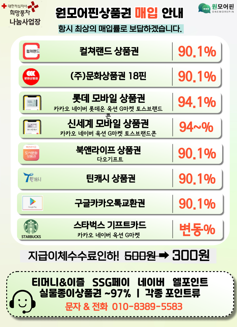 - 상품권 현금교환 신청시 : 이름 , 휴대전화번호 , 계좌번호, CI, DI